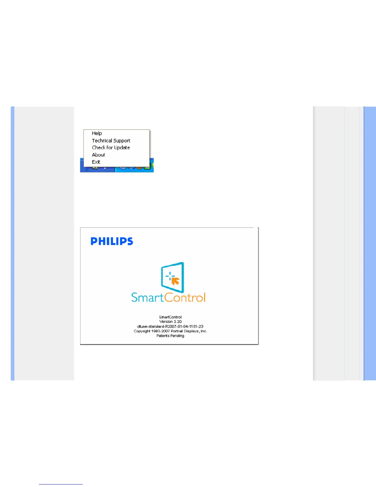 The task tray menu can be displayed by right-clicking on the SmartControl II icon from the task tray. Left Click will launch