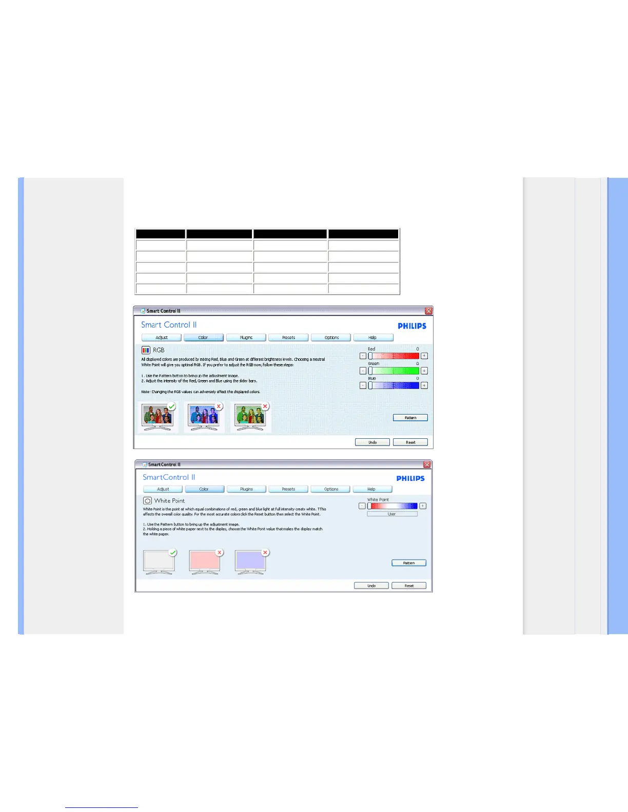 ● Color Menu allow you to adjust RGB, Black Level, White Point, Color Calibration, and
