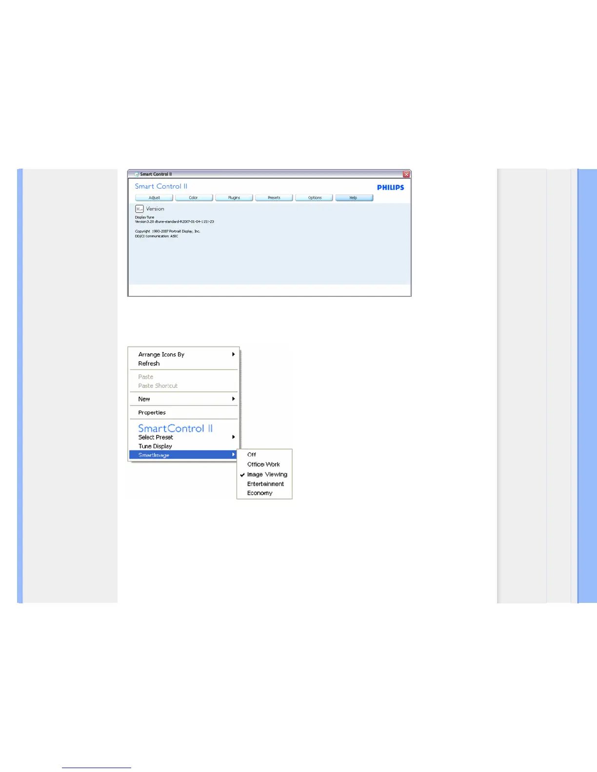 4. Fly off for SmartImage - Check current settings, Off, Office Work, ImageViewing, Entertainment, Economy.