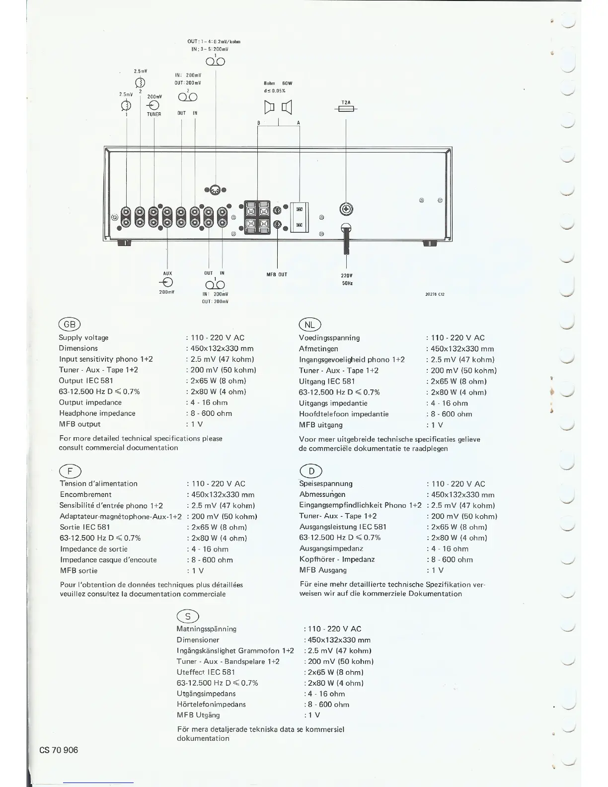Philips 22AH396 - Technical Specifications and Rear Panel; Unit Specifications; Rear Panel Connections