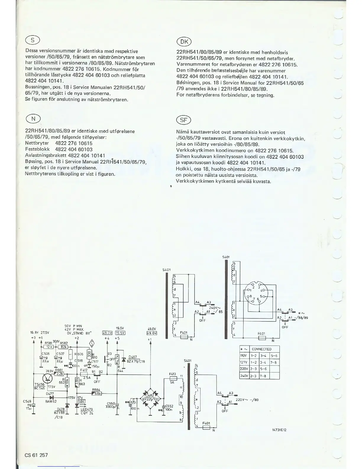 Philips 22H541 - Further Product Version Details