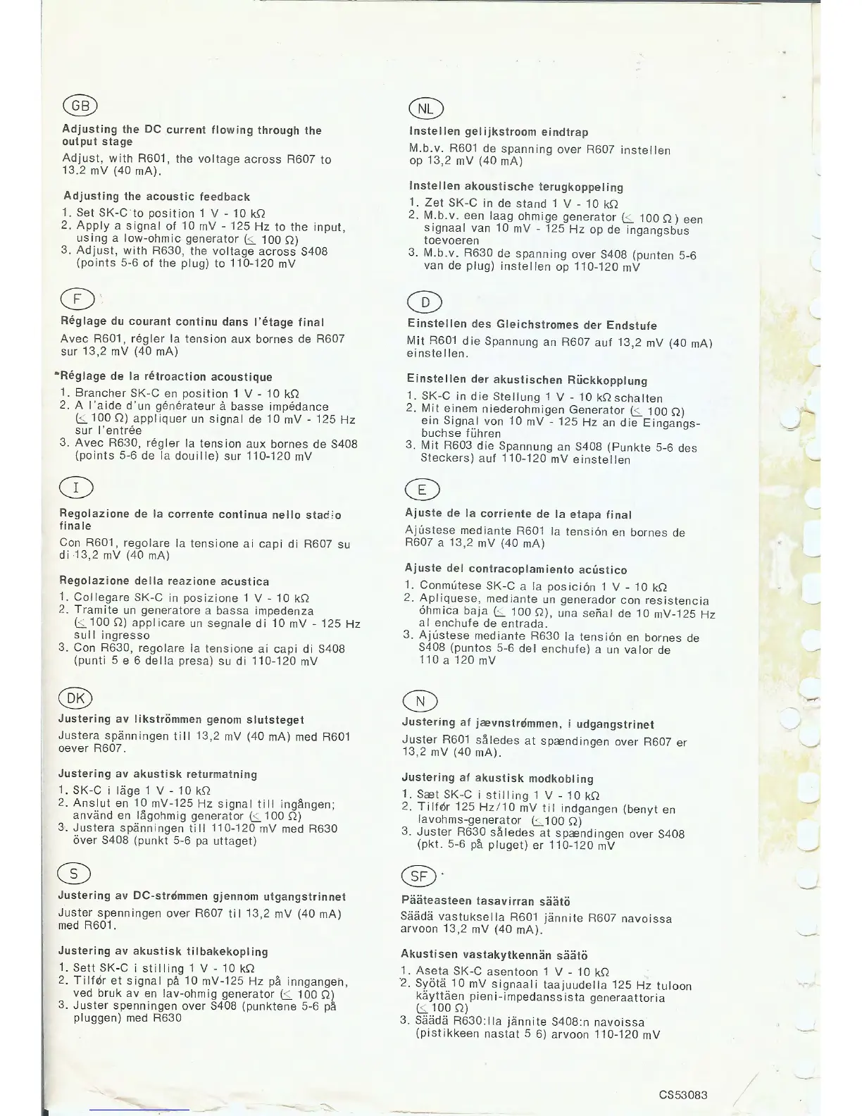 Philips 22H541 - Adjustment Procedures by Region; GB: DC Current Adjustment; F: Acoustic Feedback Adjustment; NL: DC Current Adjustment