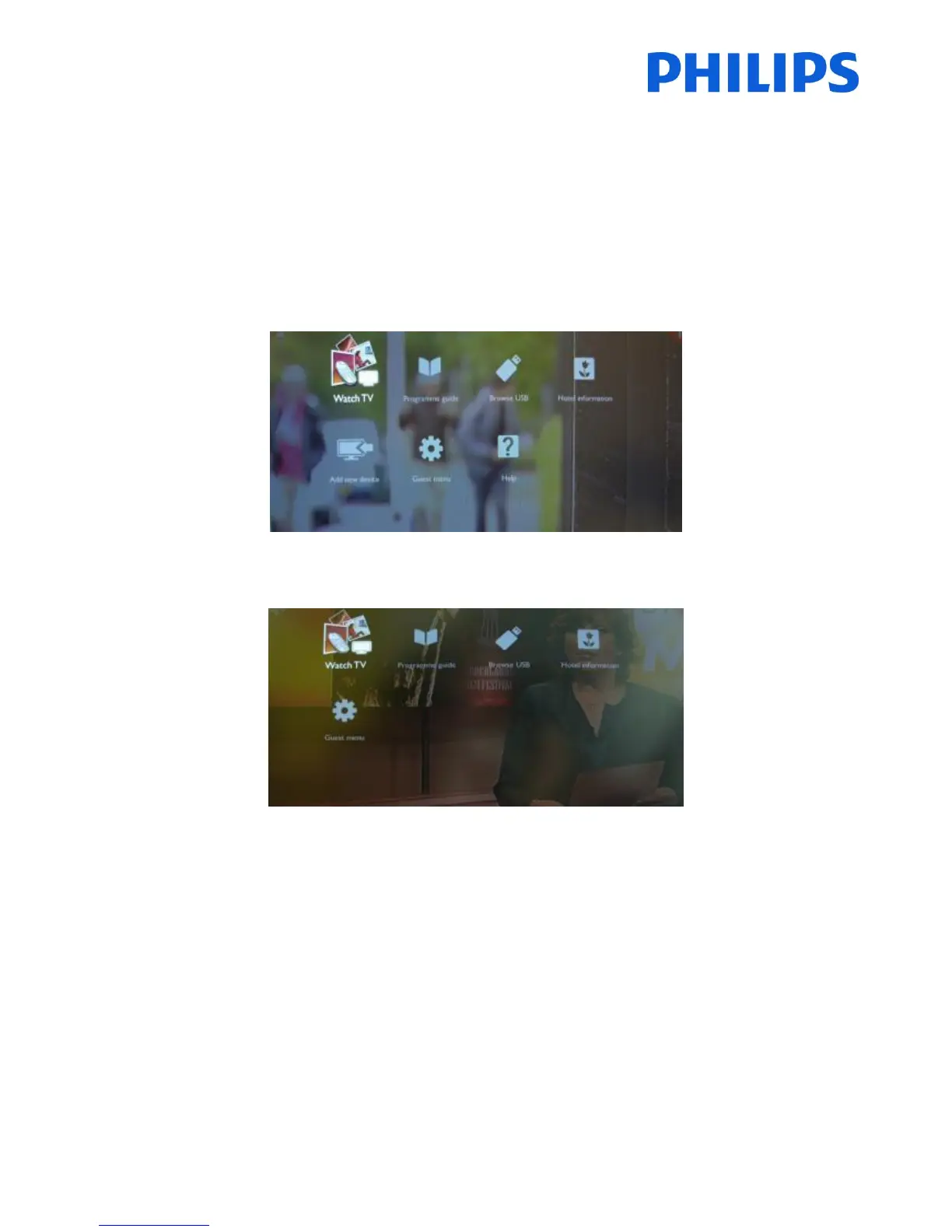Press “Home” button to see the guest menu.
