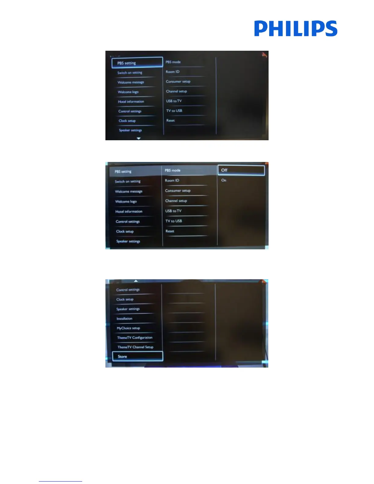 The previous menu will be active, use left arrow to go the base menu of the PBS menu. Go to Store option down
