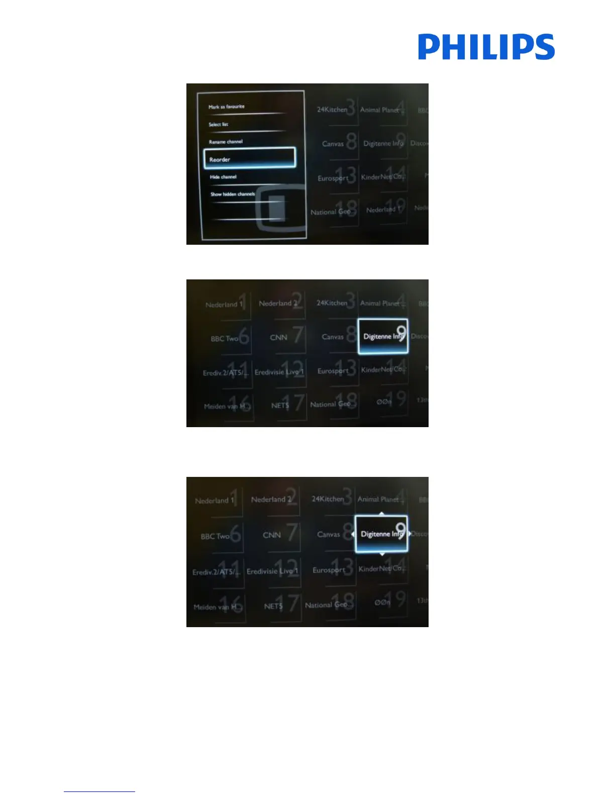 When you reached the new position press “OK” on the remote control to confirm the new position of the channels.