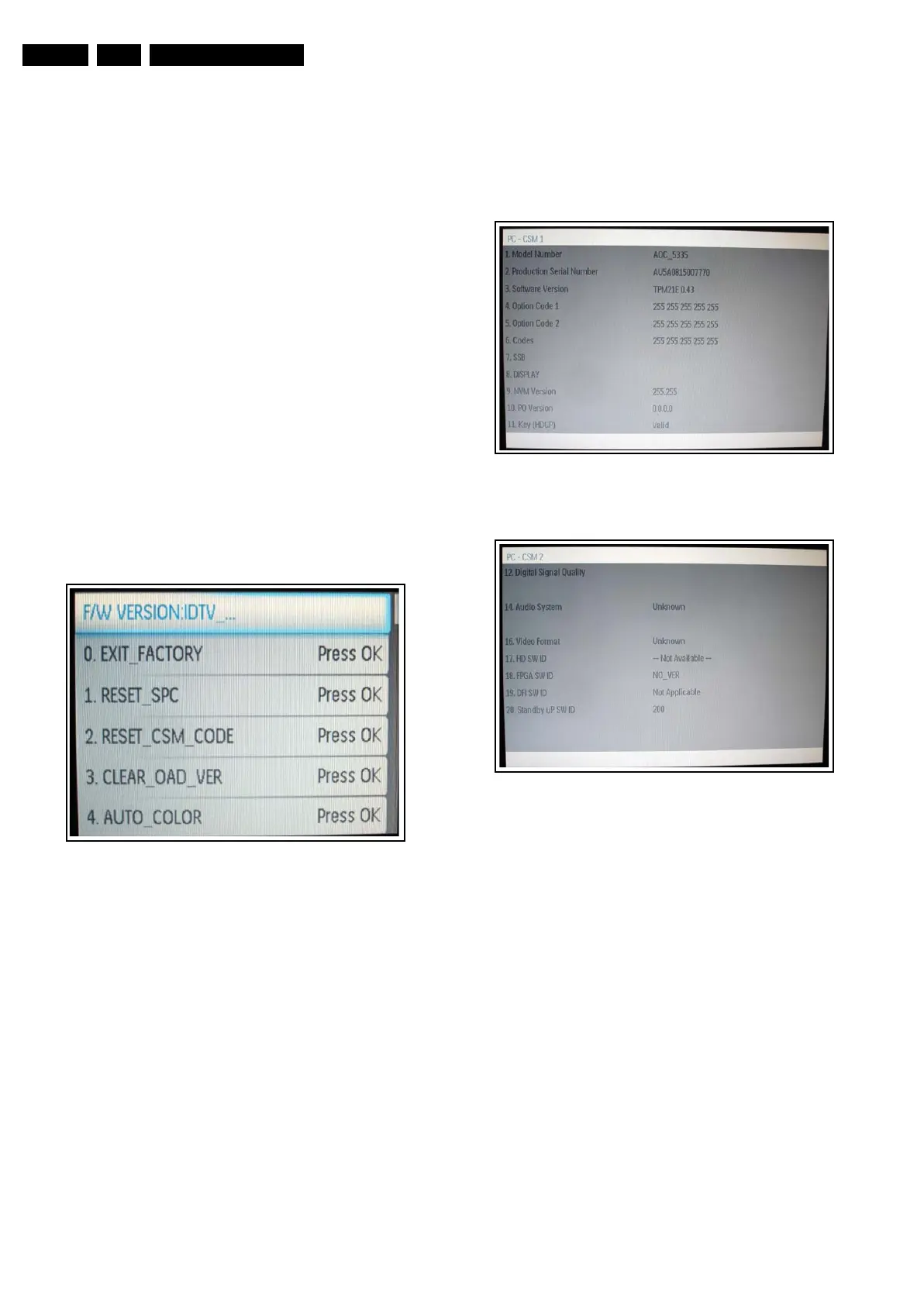 5.2.1 Factory Mode or Service Alignment Mode (SAM)