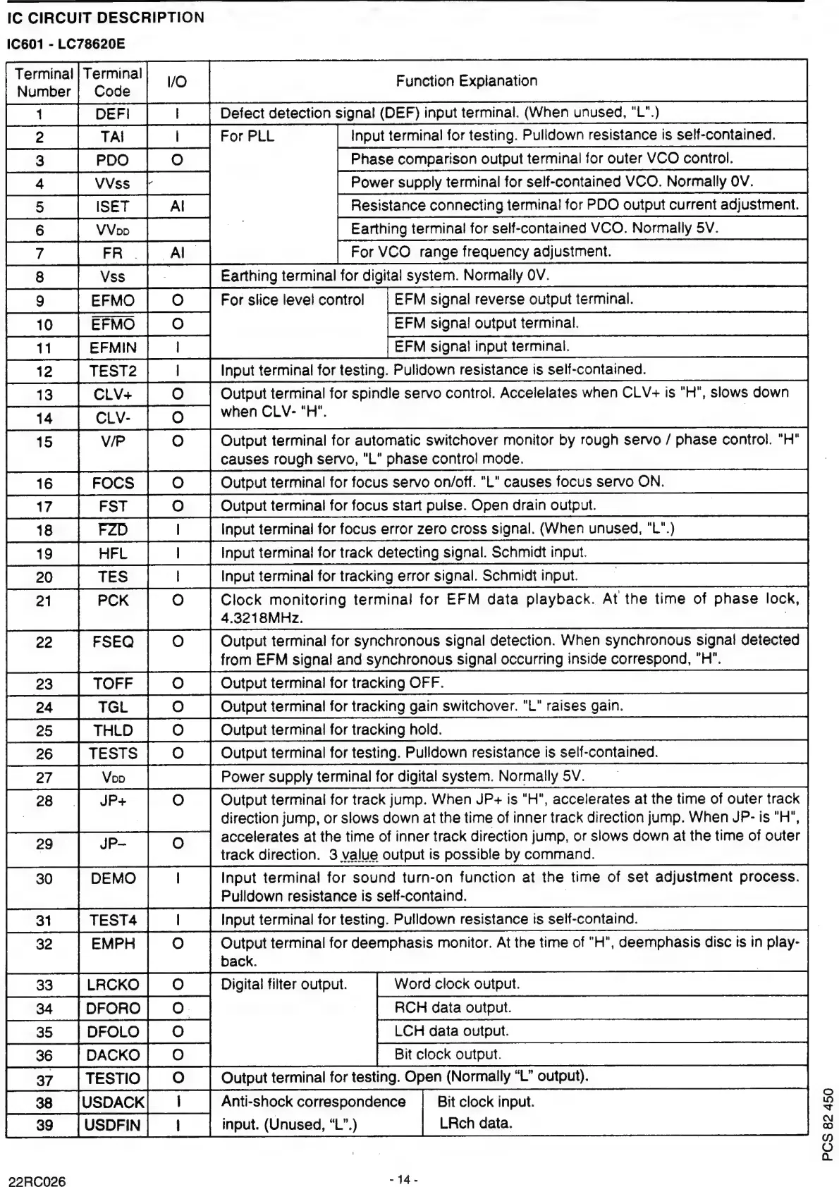 Philips 22RC026/00 - IC Circuit Descriptions; IC601 - LC78620 E Terminal Functions