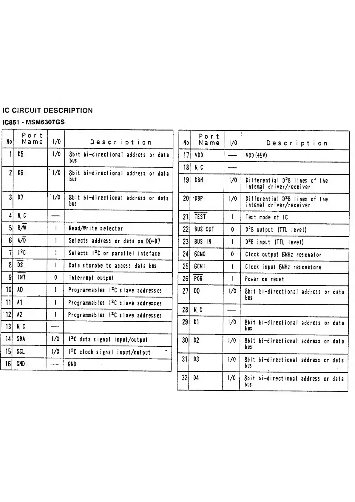 Philips 22RC026/00 - IC Circuit Descriptions (Continued); IC851 - MSM6307 GS Terminal Functions