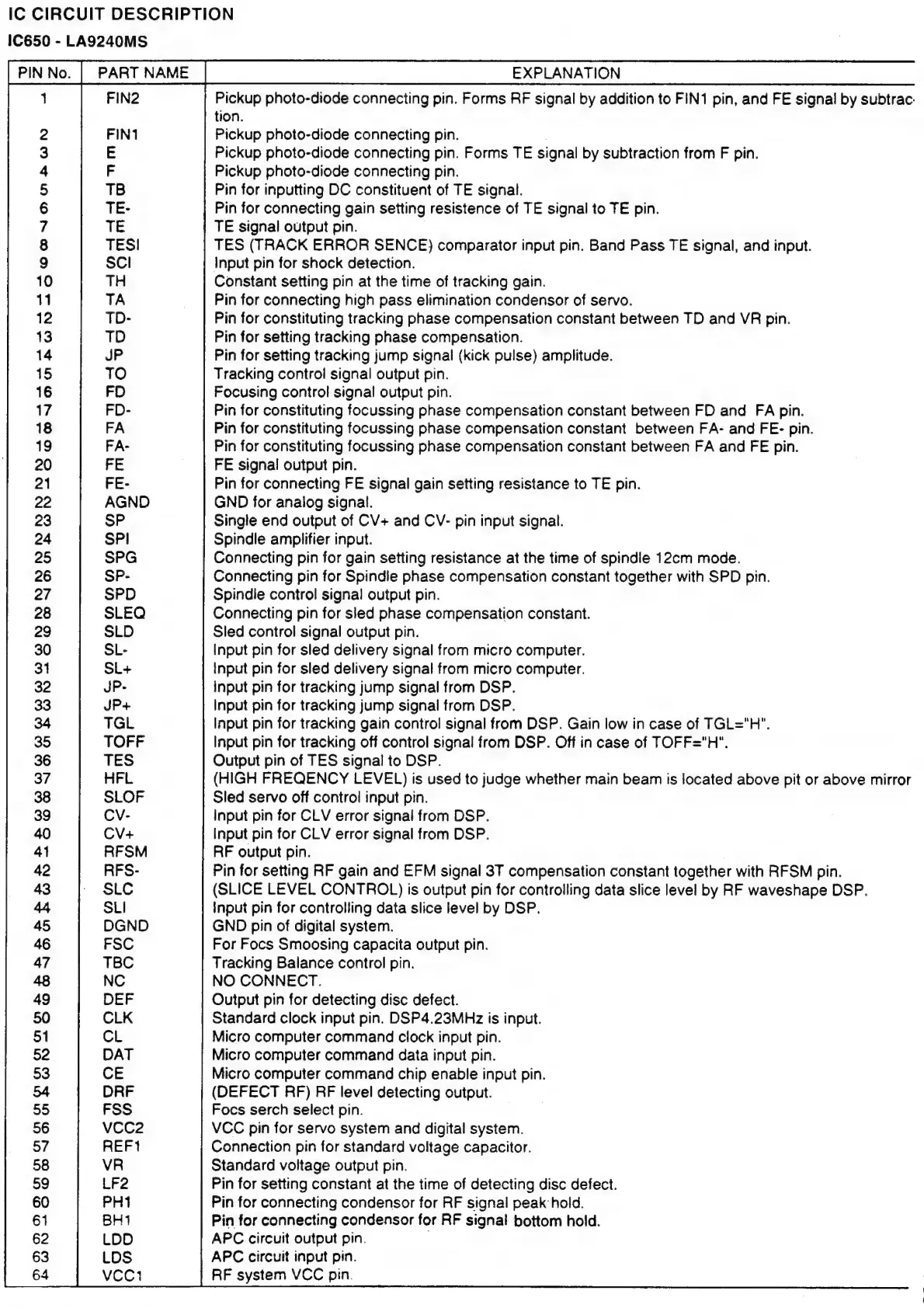 Philips 22RC026/00 - IC Circuit Descriptions (Continued); IC650 - LA9240 MS Terminal Functions