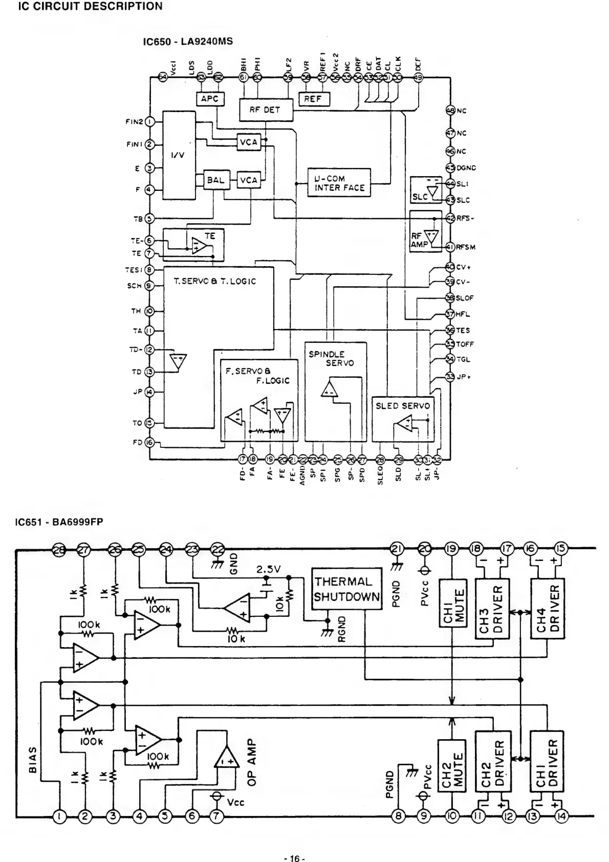Philips 22RC026/00 - IC Circuit Descriptions (Continued); IC650 - LA9240 MS Terminal Functions (Contd); IC651 - BA6999 FP Terminal Functions