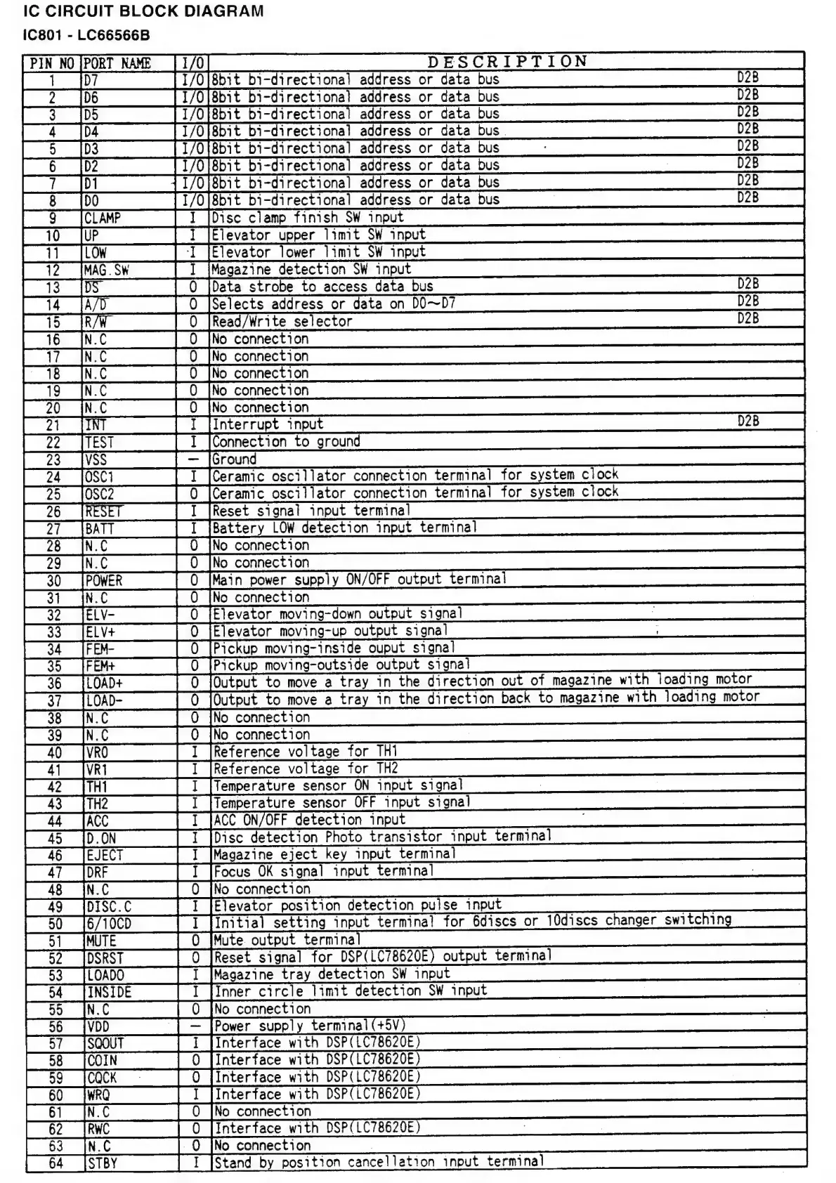Philips 22RC026/00 - IC Circuit Descriptions (Continued); IC801 - LC66566 B Terminal Functions
