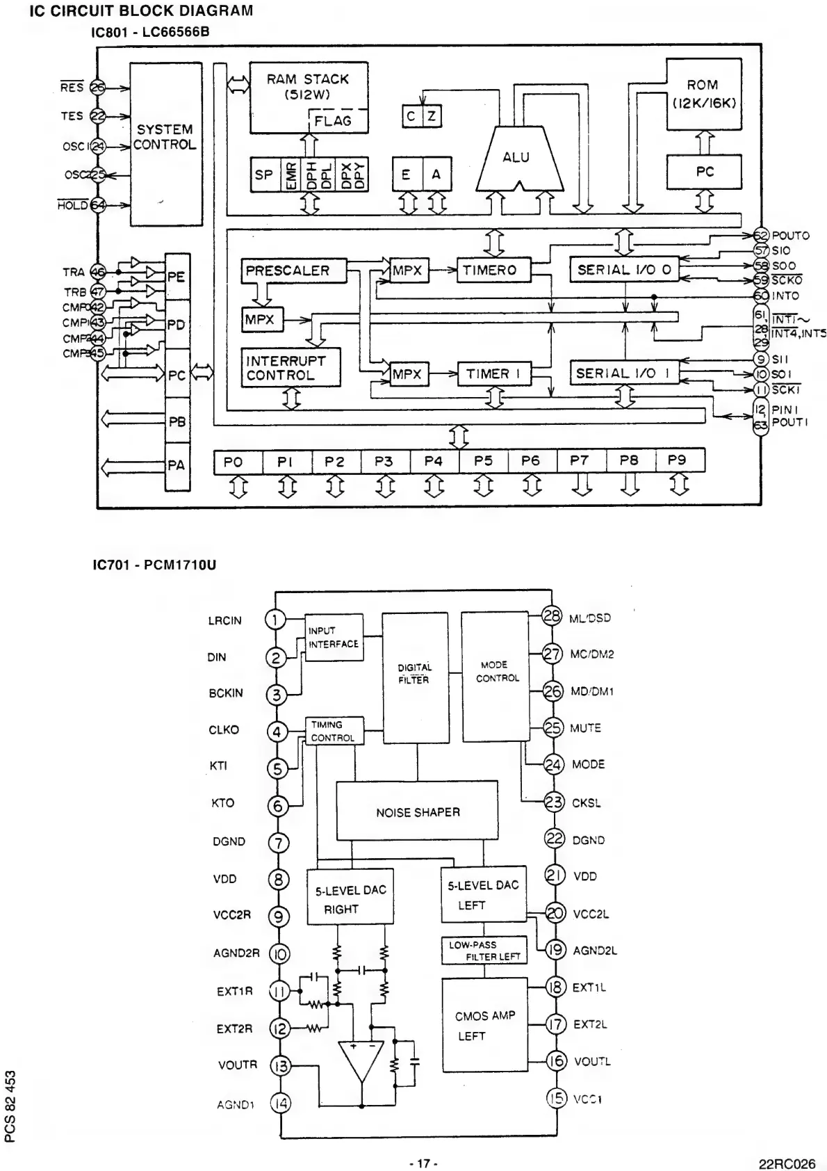 Philips 22RC026/00 - IC Circuit Block Diagrams (Continued); IC801 LC66566 B Block Diagram; IC701 PCM1710 U Block Diagram