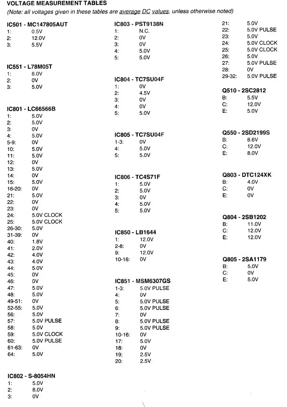 Philips 22RC026/00 - Voltage Measurement Tables (Continued)