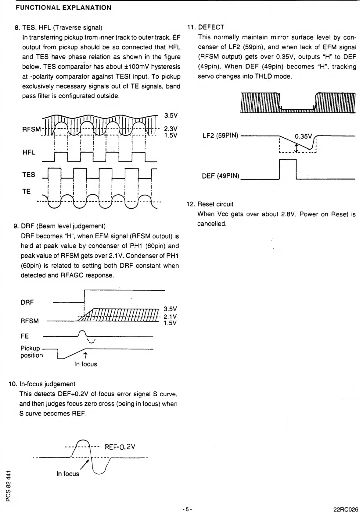 Philips 22RC026/00 - Functional Explanation (Continued); TES, HFL (Traverse signal); DRF (Beam level judgement); In-focus judgement