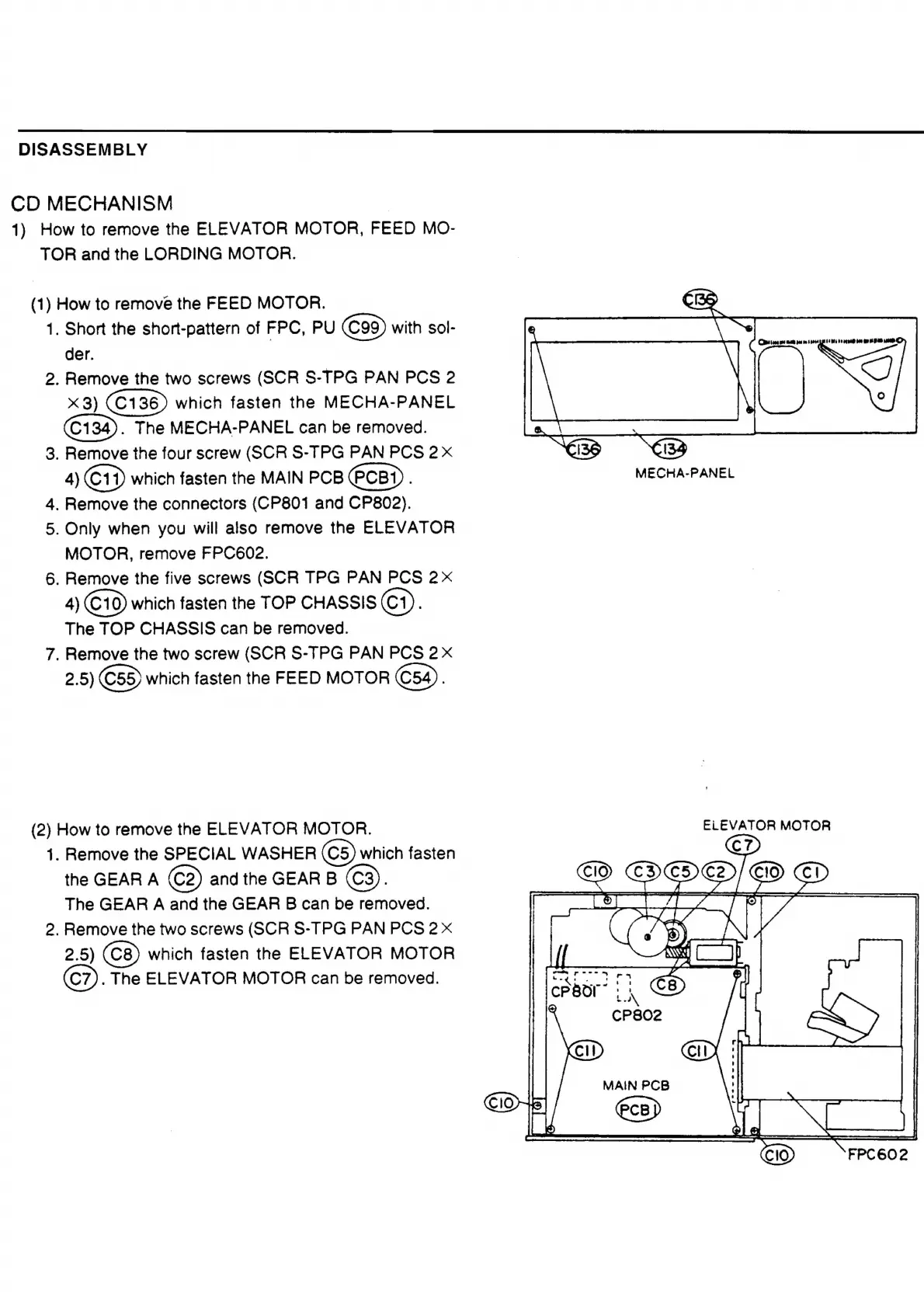 Philips 22RC026/00 - CD Mechanism Disassembly; Feed Motor Removal; Elevator Motor Removal