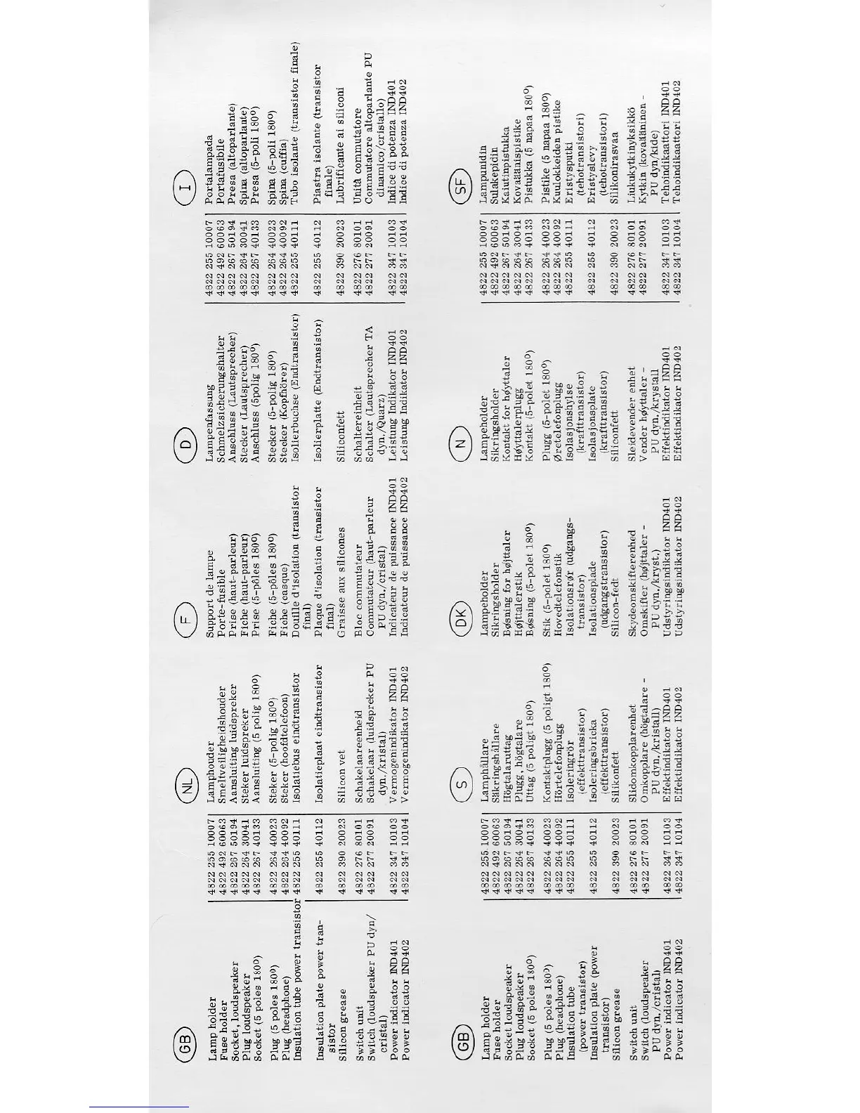 Philips 22RH520 00 - Component Part Numbers; Basic Component Part Numbers; Indicator and Switch Part Numbers