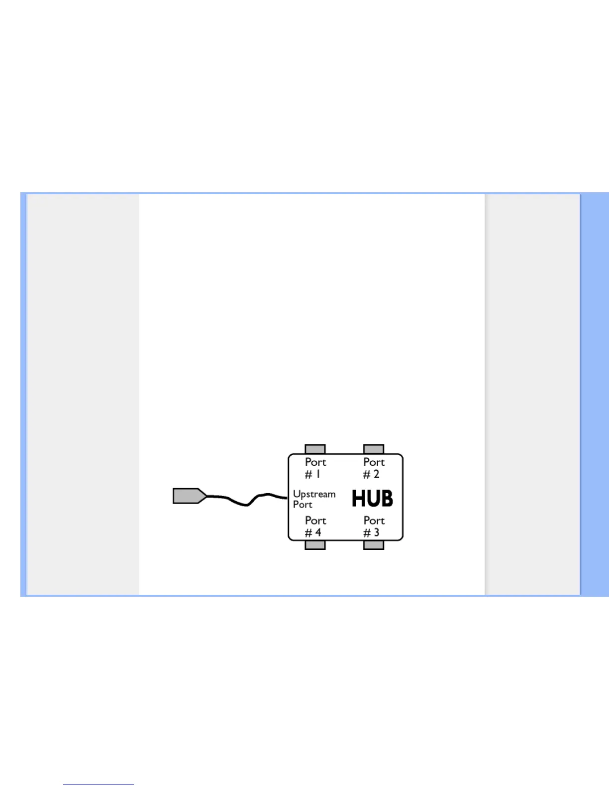 The upstream port of a hub connects the hub towards the host. Each of the other downstream ports