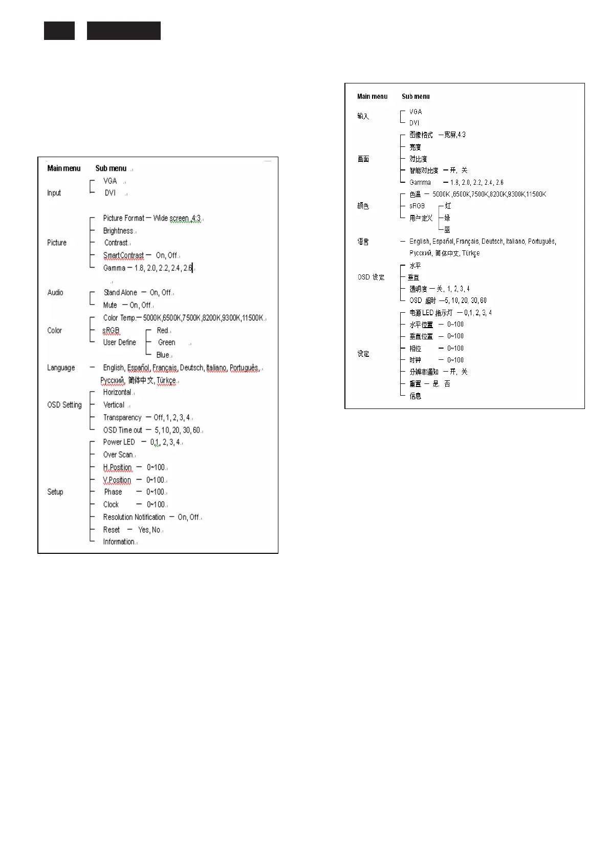 OSD Menu Control Structure