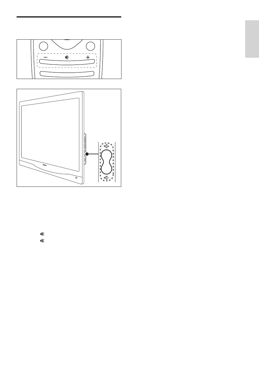 • Press VOL +/- on the remote control.