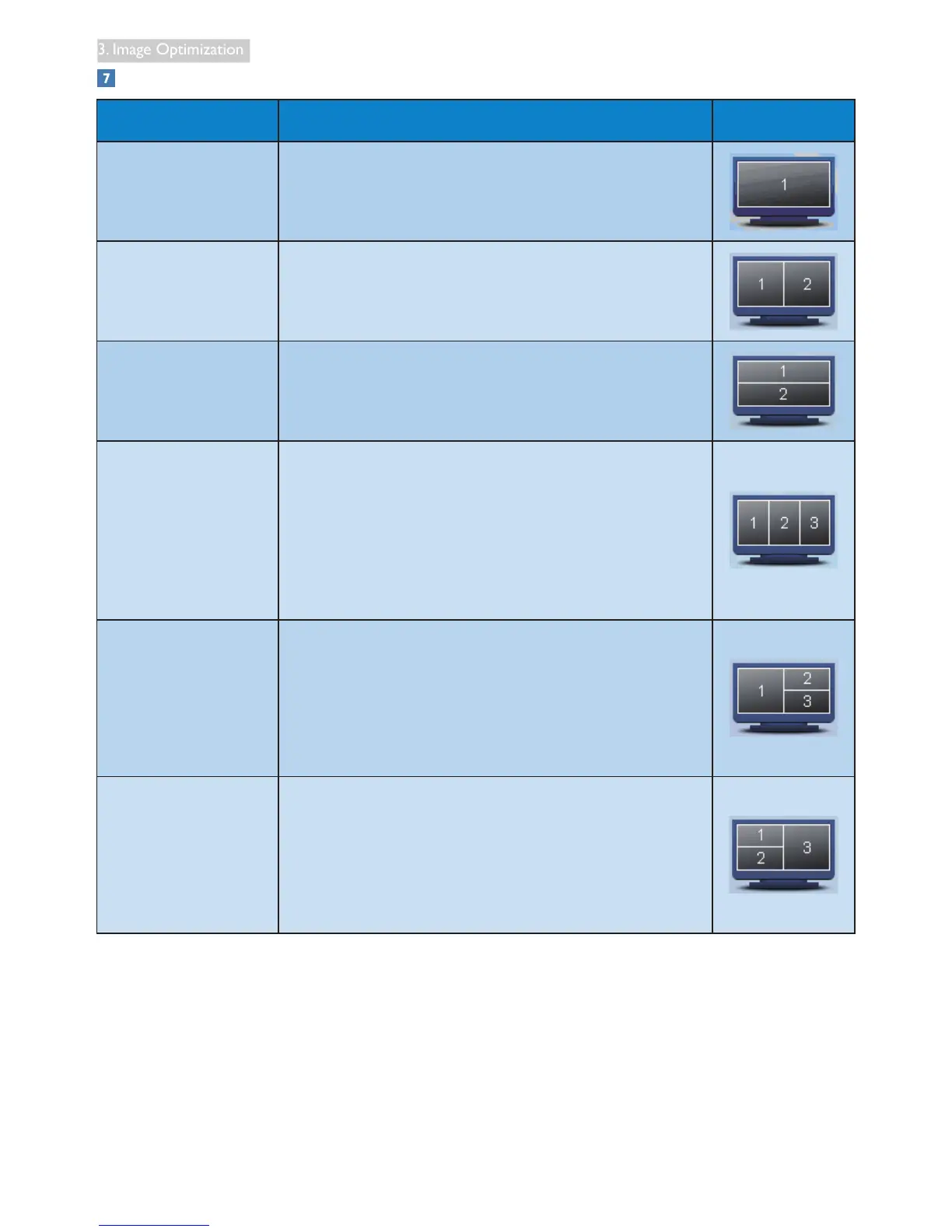 Vertical Assesses the screen resolution and divides the display