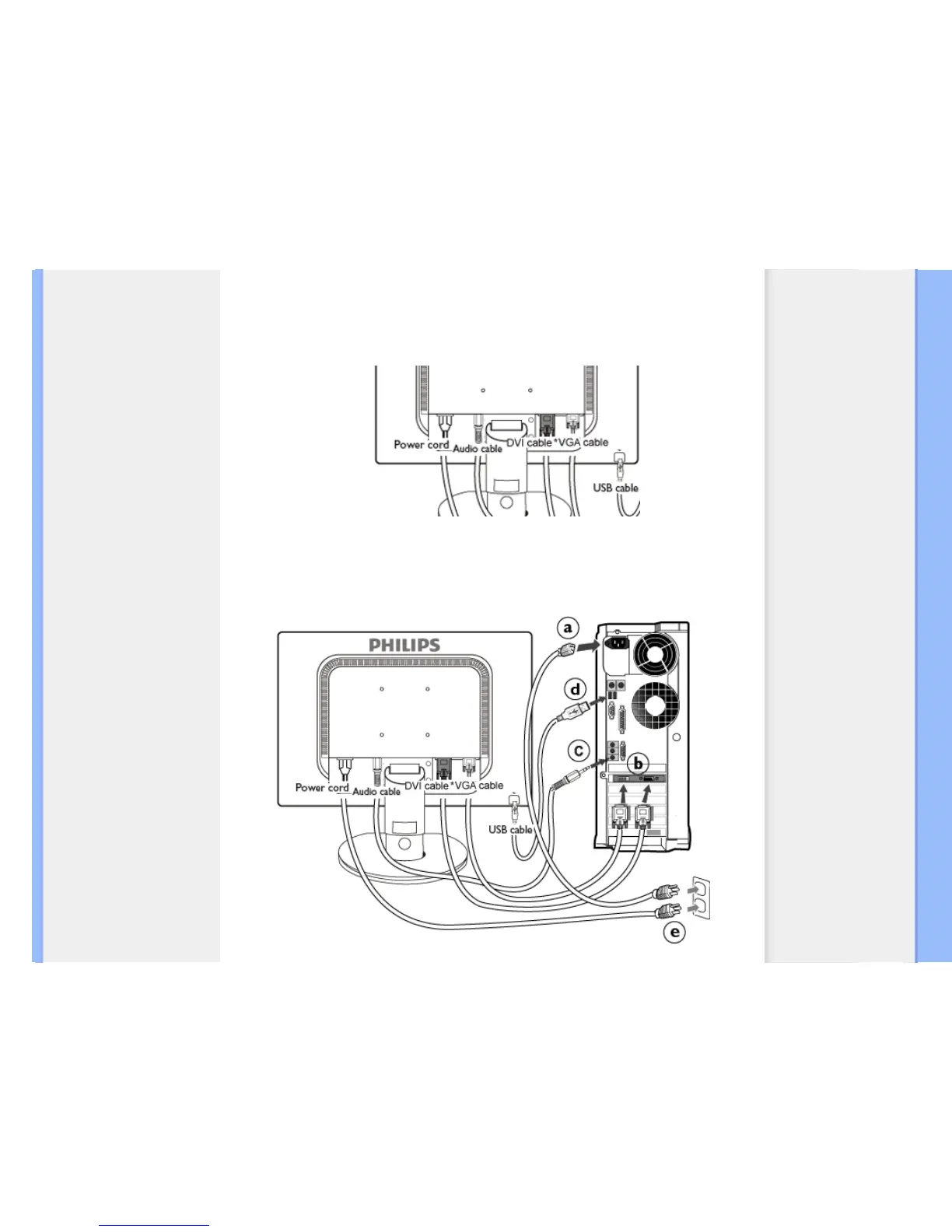 1) Connect the power cord to the back of the monitor firmly. (Philips has pre-connected