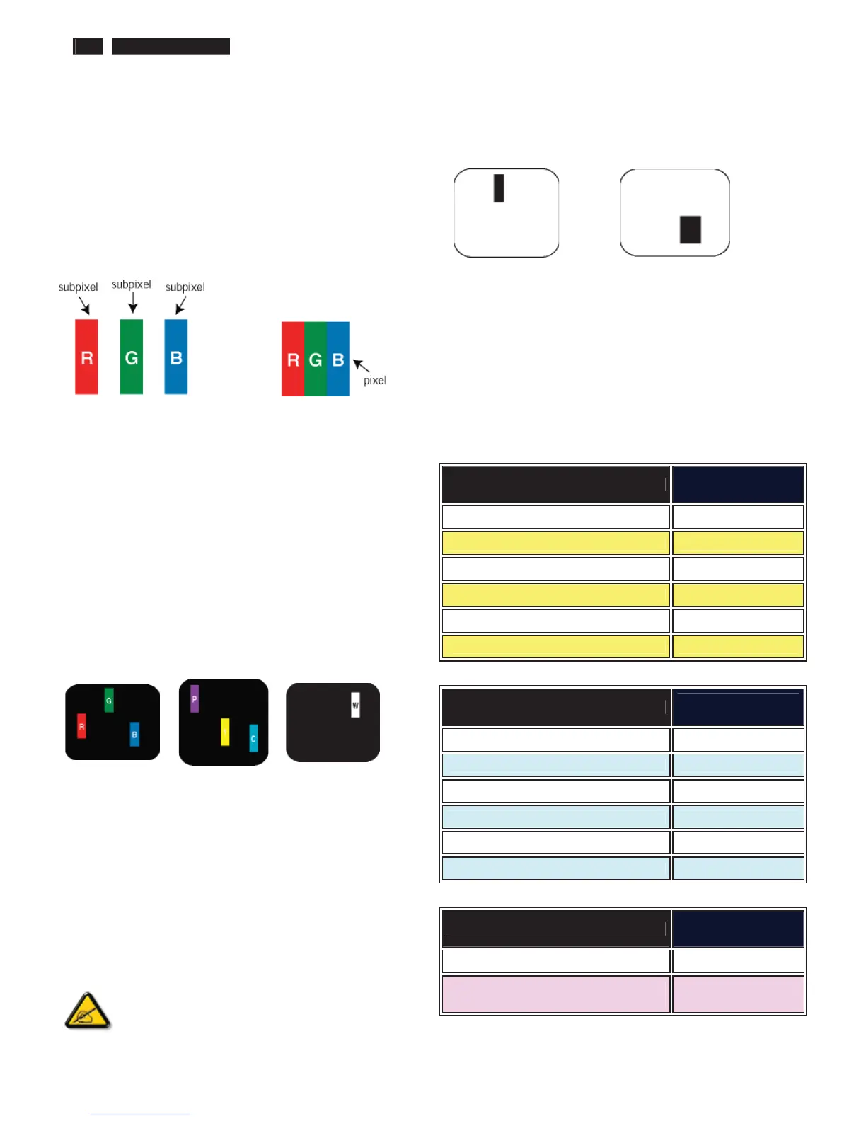 appear as a single black pixel. Other combinations of lit and dark sub pixels