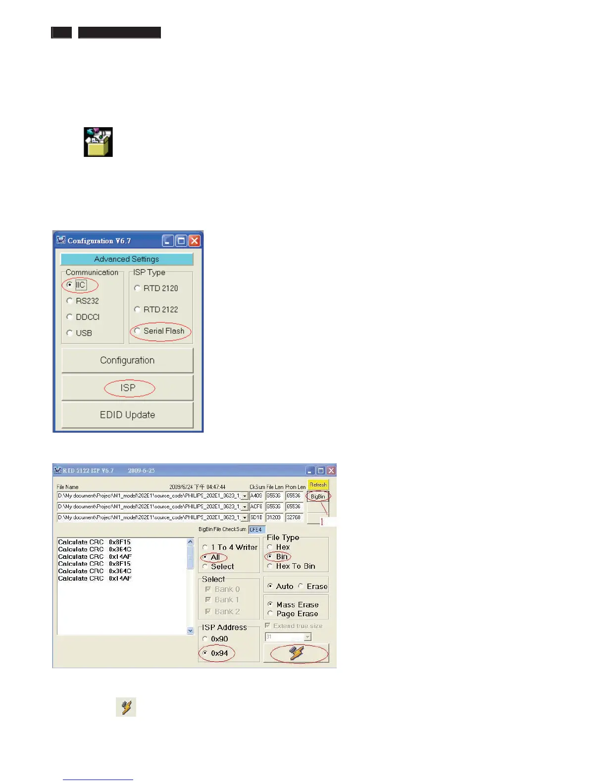 Step 2: Choose “ IIC”, “RTD2122” and . Then, press “ISP”