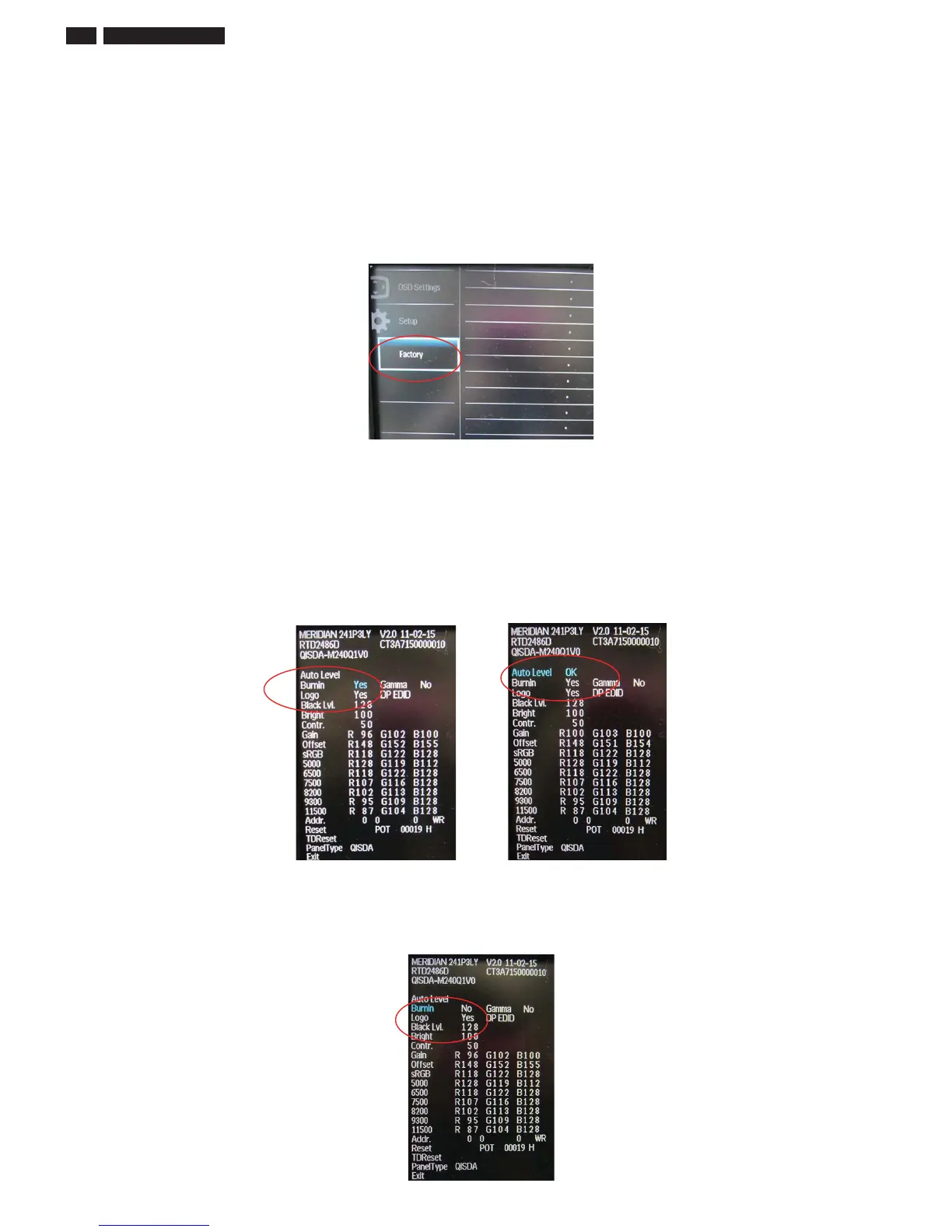 Setup input timing (1280*1024@75Hz) and enter factory mode (press “Menu”
