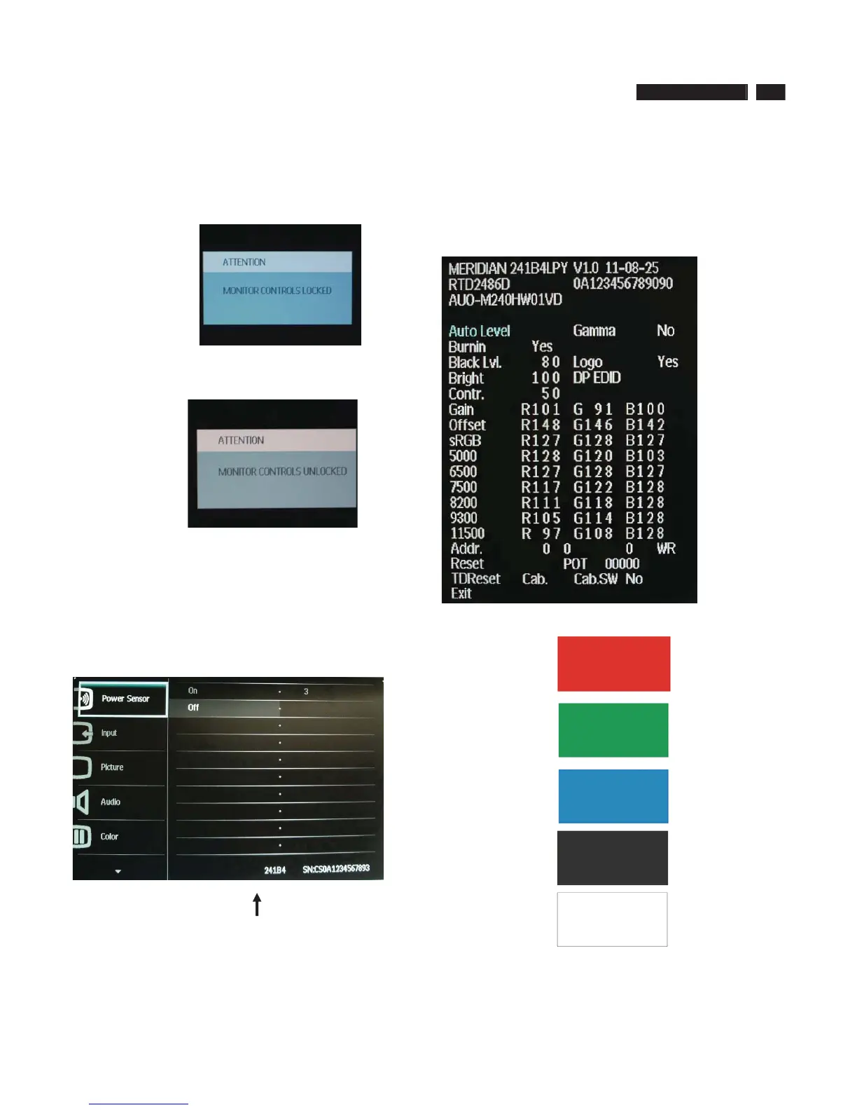 "MERIDIAN 241B4LPY V1.0 2011-08-25” (below OSD menu) come on the