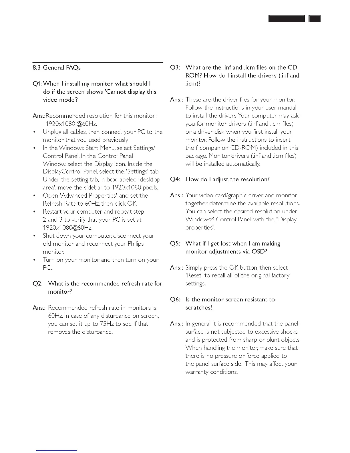 Philips 241P3EB/00 - Faqs (Frequently Asked Questions)