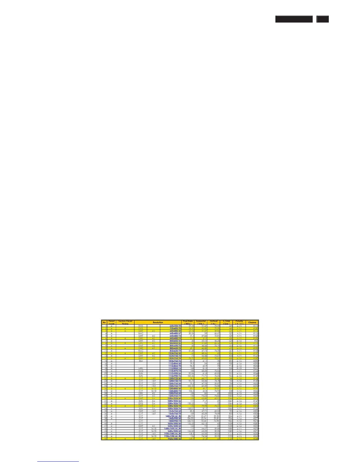 3.3.3 Factory modes and preset modes are defined in the enclosed timing table file
