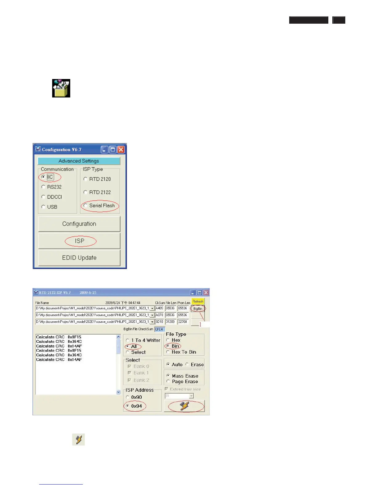 Step 2: Choose “ IIC”, “RTD2122” and . Then, press “ISP”