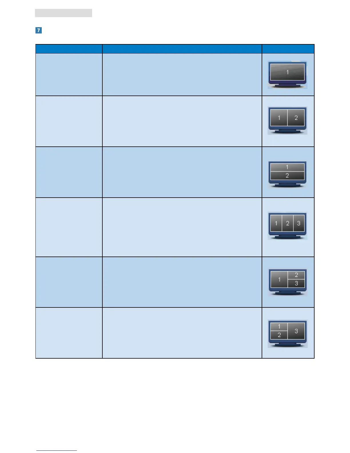 Vertical Triple Assesses the screen resolution and divides the display into