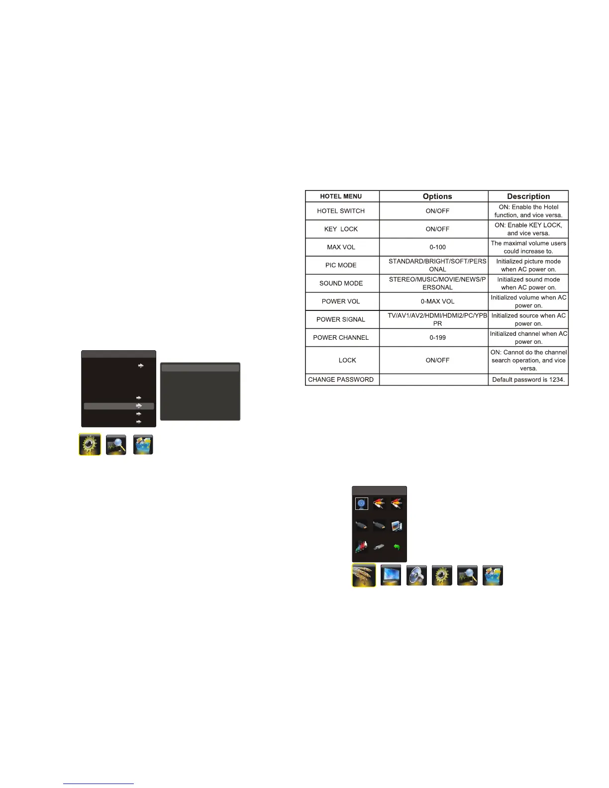 Note:Hotel sub menu features work only when hotel mode is on.