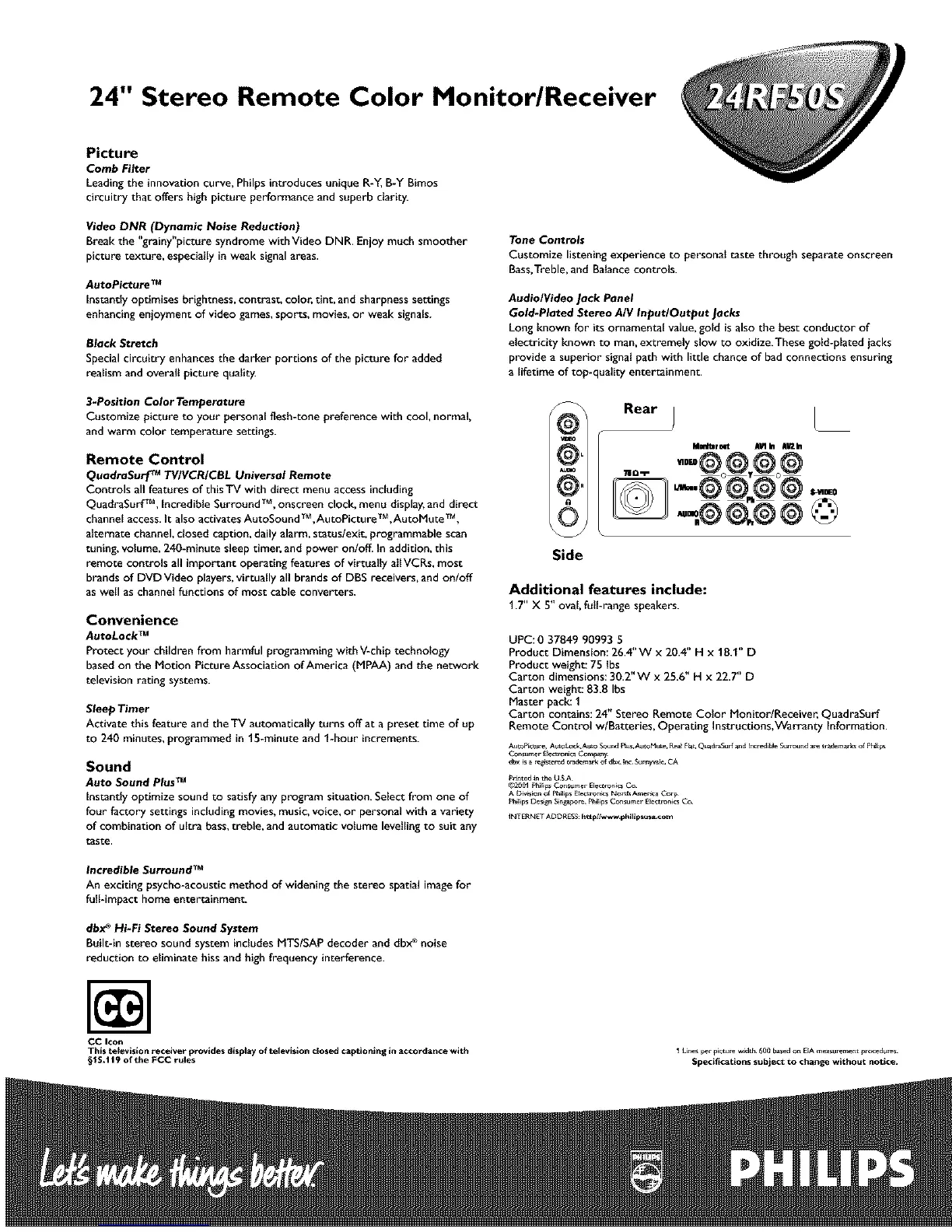 Carton contains: 24" Stereo Remote Color Monitor/Receiver, QuadraSurf