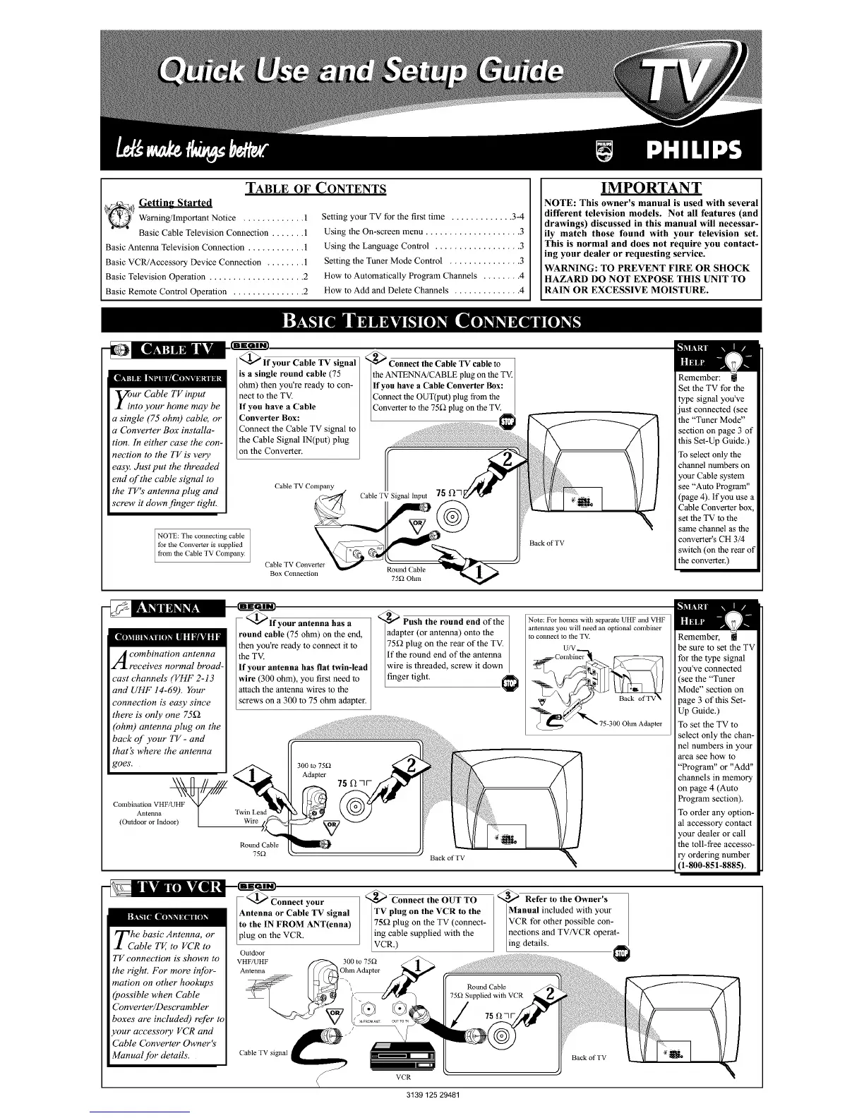 nections and TV/VCR operat-