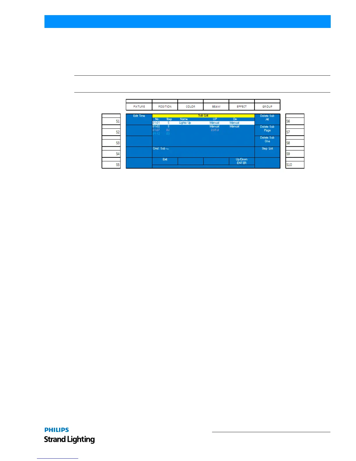 • (S9-Step List): will display a list of all steps stored in a submaster effect or playback.