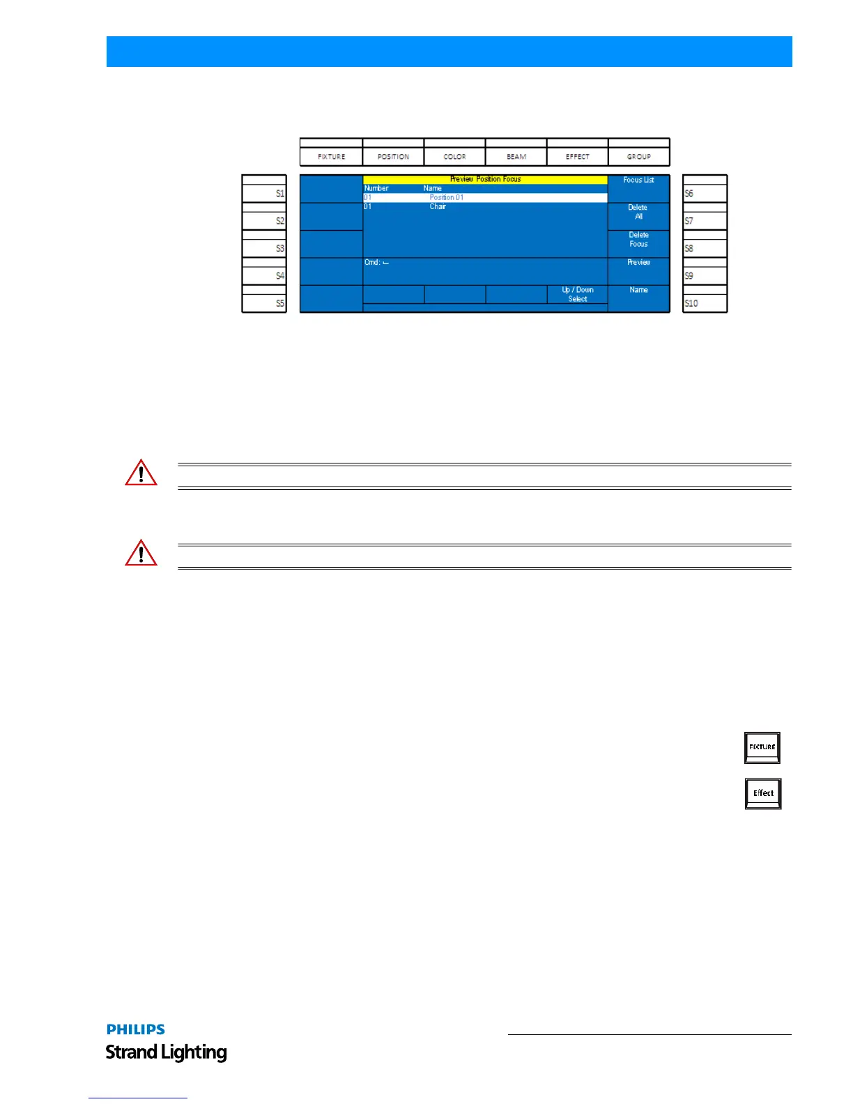• Encoder D – Up/Down will allow the user to select any focus by rotating the encoder. (S6-Focus List) shall take