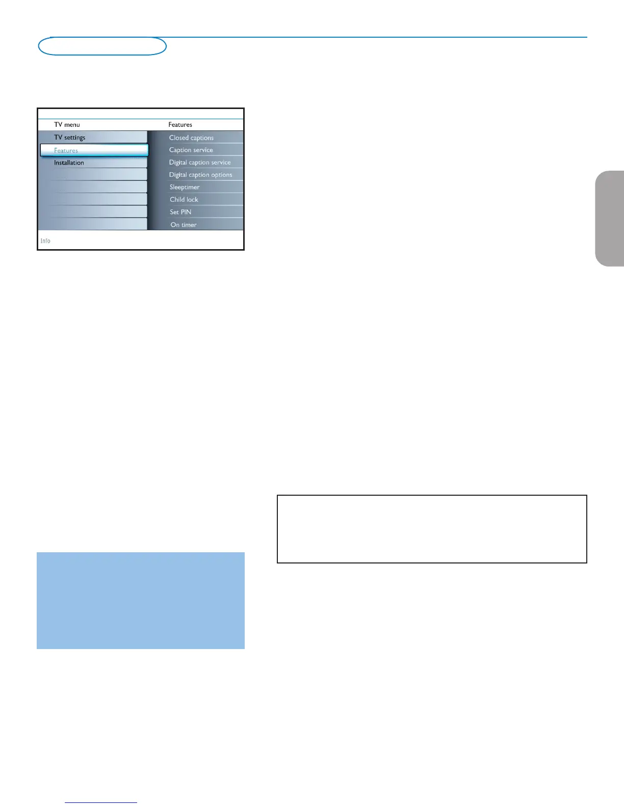 ‘ See Closed Caption in the TV, Features menu, see above, to turn the Caption