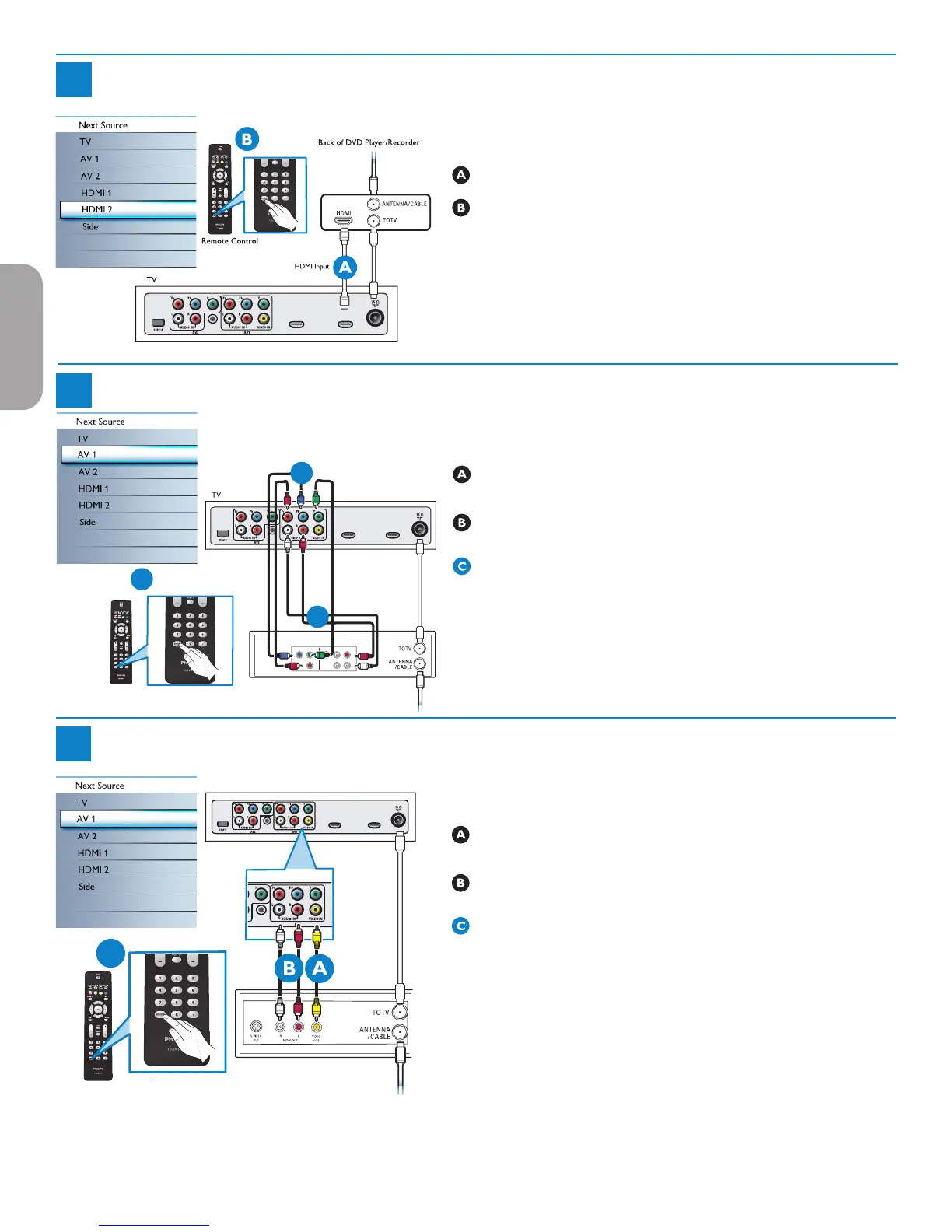 Connect DVD player/DVD recorder to the TV using HDMI cable.