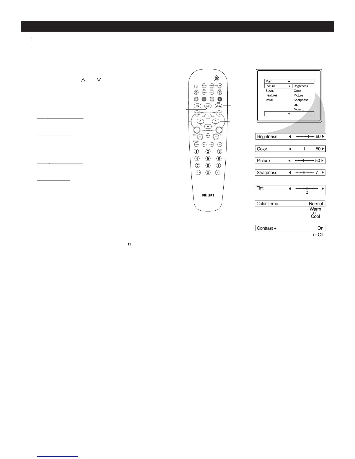 o adjust your TV picture controls, select a channel and use the Picture Menu Controls listed below. Your selection is