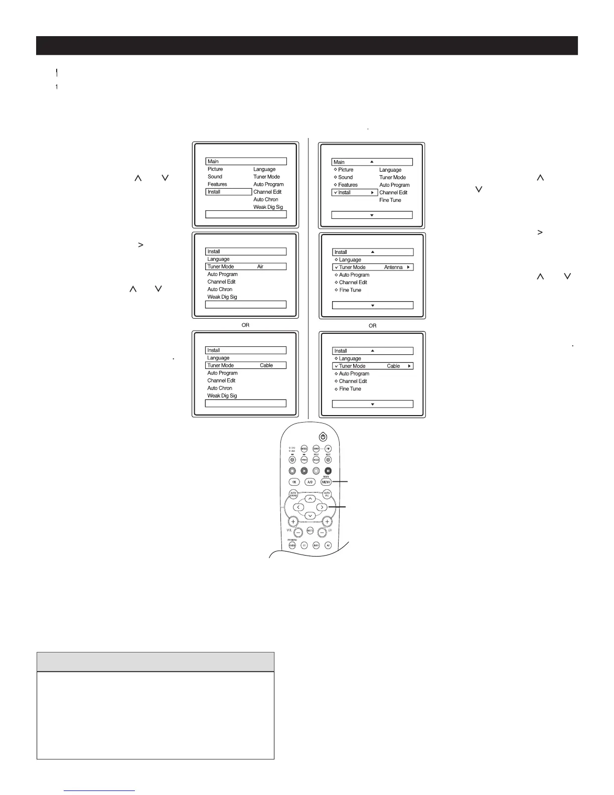 he TUNER MODE control lets you change the TV input signal to ANTENNA or CABLE mode. It is important