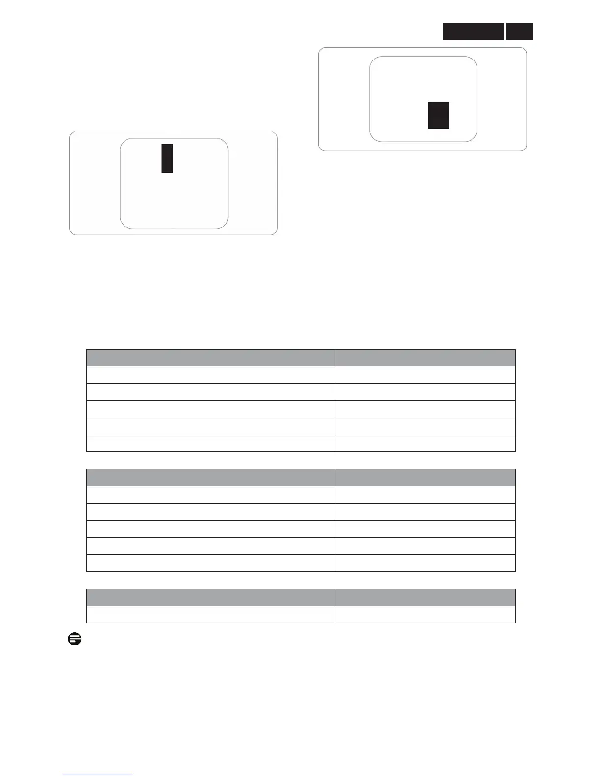 Note: 1. 1 or 2 adjacent sub pixel defects = 1 dot defect.