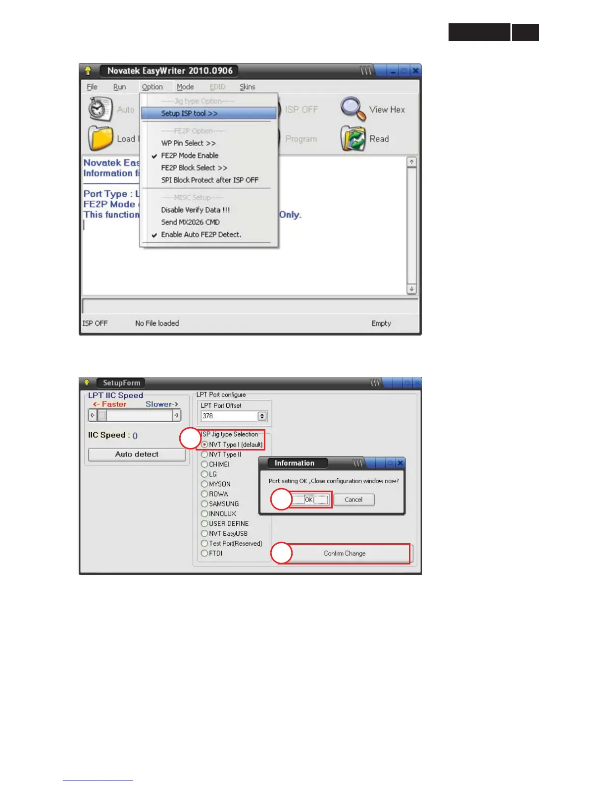 5. Select the “NVT Type I (default)”, click the icon “Confirm Change”. and then click the “OK”