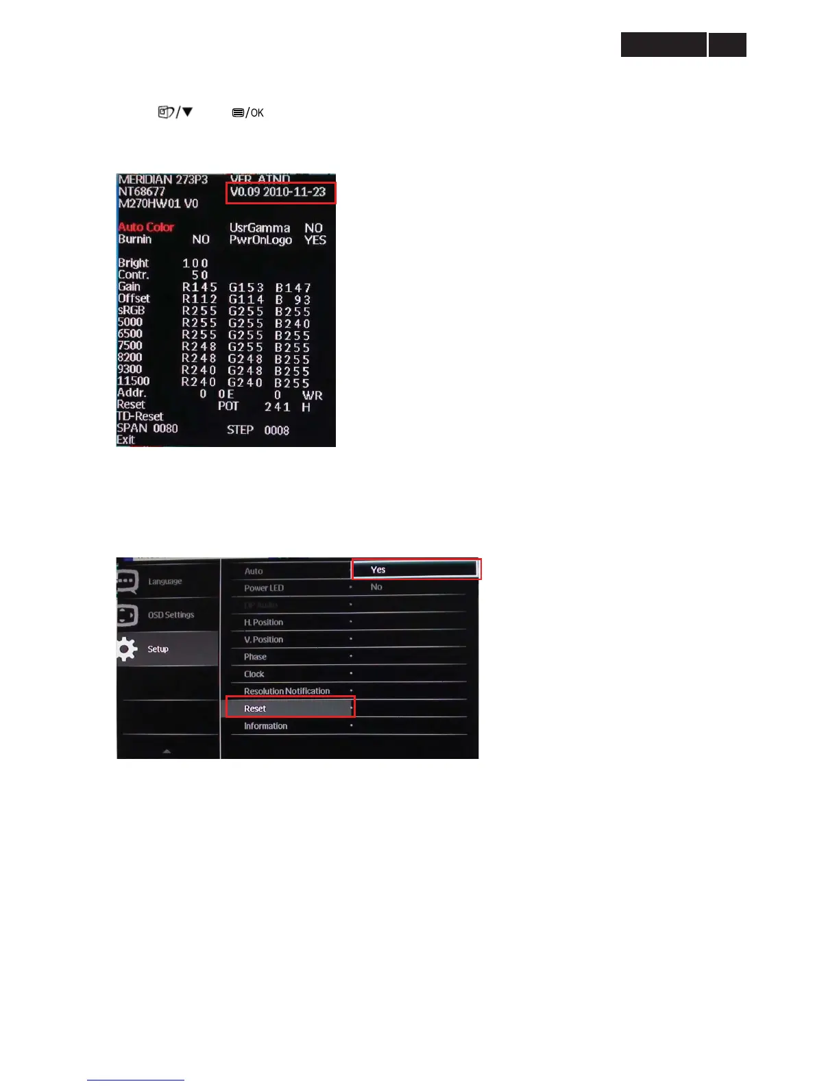 2. Press and buttons at the same time, power on the monitor, and then press the menu again; the