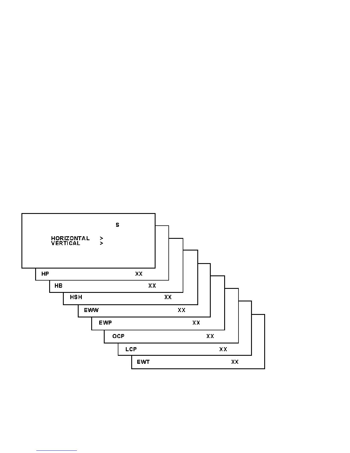 8. Use the MENU UP/DOWN keys to highlight either the HORIZONTAL sub menu