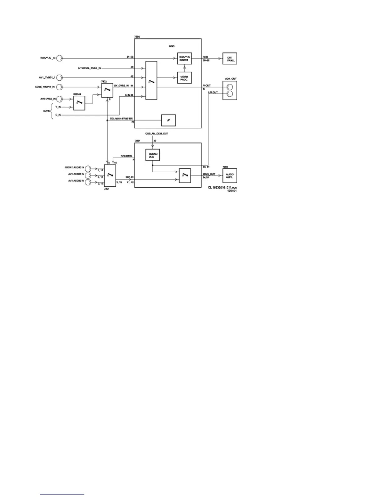 The Y signal and the delay line outputs U and V are appliedto the luminance / chroma signal