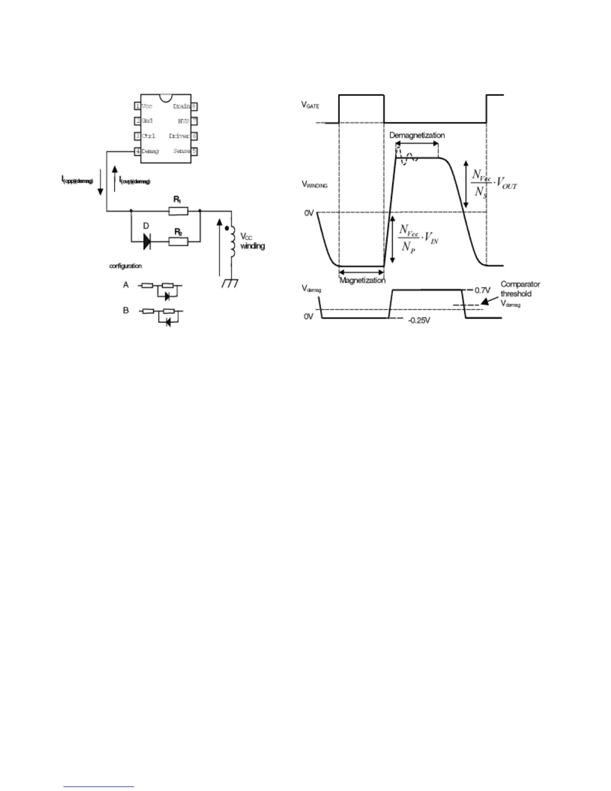 level. This worksby sensing the auxiliary voltage via the current flowing into pin4 (DEM) during