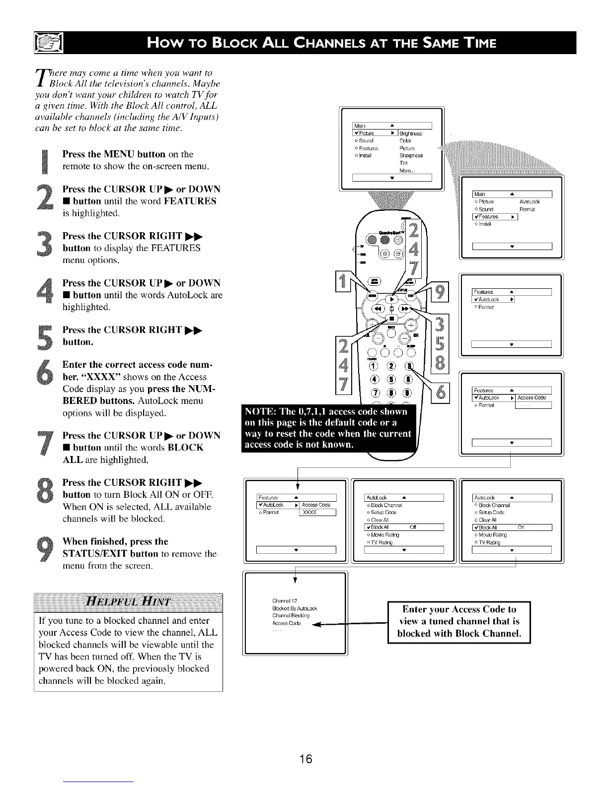a given time. With the Block All _ontrol, ALL