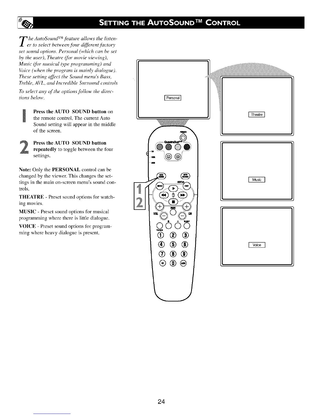 Press the AUTO SOUND button onthe remote control, The current Auto
